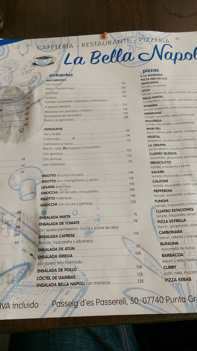 La Bella Napoli’s food and drink selections serve everyday moments—a casual meal with friends, a family gathering, or a restful pause from exploring the Illes Balears. The portions are generous and the offerings approachable, making it a reliable choice whenever you’re in the mood for Italian flavors without fuss.